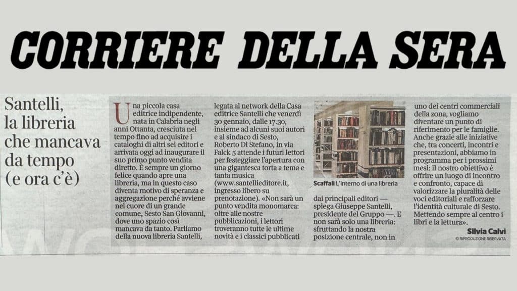 News, Rassegna stampaLibrerie Santelli su Corriere della Sera: “Santelli, la libreria che mancava da tempo (e ora c’è)” News, Rassegna stampa