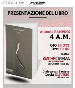 Antonio Rampino presenta “4 a.m.” presso AncheCinema Teatro, Corso Italia, 112 (BR)
